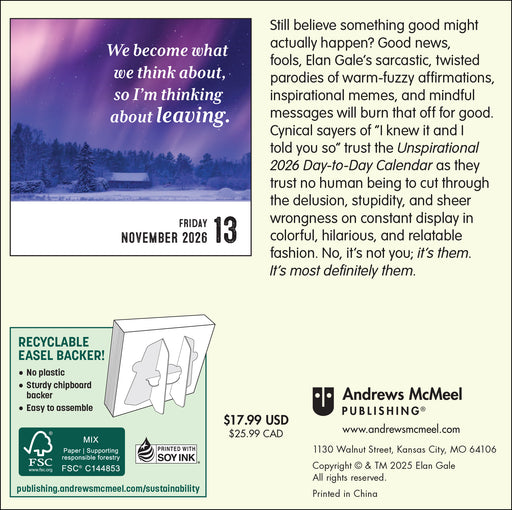 Andrews McMeel PublishingOriginal price $25.00 - Original price $25.00Original price$25.00$25.00 - $25.00Current price $25.00| /The Unspirational 2026 Desk Calendar is your daily dose of dry humor and darkly funny barbs, perfect for those who prefer a more cynical take on th...