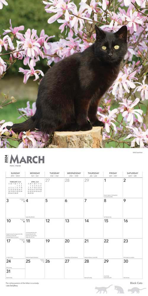 This premium wall calendar features twelve captivating full color photographs of stunning black cats, perfect for adding a touch of mystery to any ...