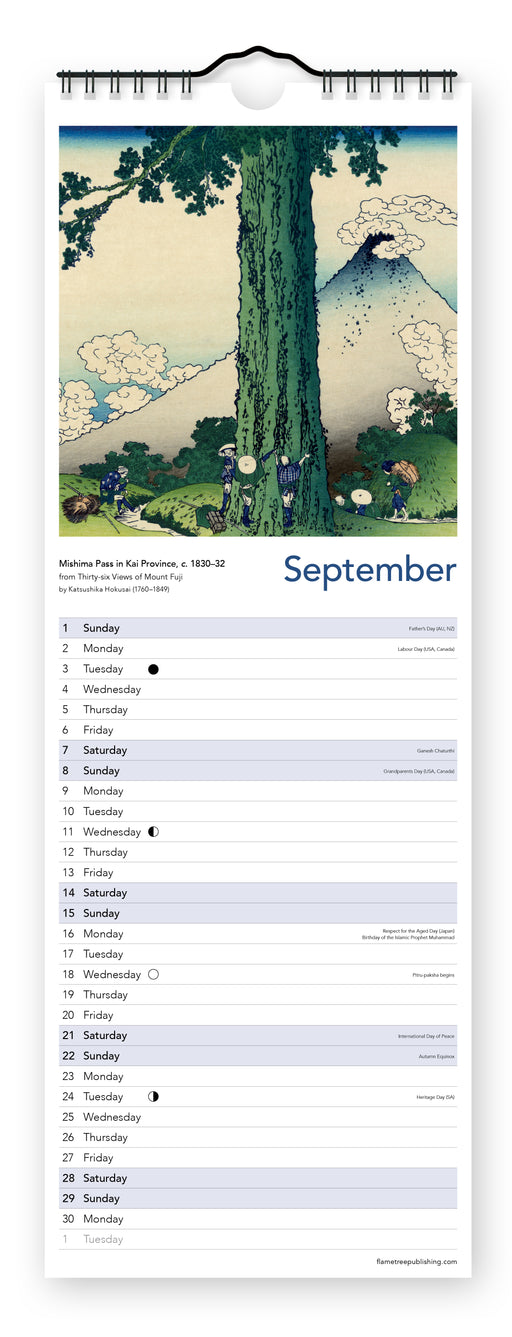 With a wide selection of views of Mount Fuji and everyday life in Japan, a fine new slim art calendar from Flame Tree.|This slim calendar is filled...