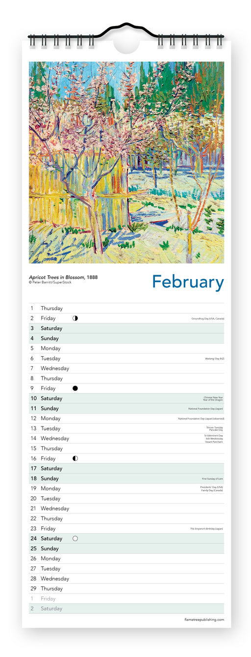 Flame Tree PublishingOriginal price $16.00 - Original price $16.00Original price$16.00$16.00 - $16.00Current price $16.00| /12 stunning months featuring many of Van Gogh's enduring paintings in a fine new slim art calendar from Flame Tree.|Vincent van Gogh believed his w...